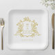 Elegante Gold Floral Wappen Monogram Wedding Pappteller