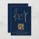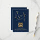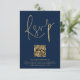 Elegante Gold Navy Script Qr Code Wedding RSVP Car