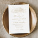 Rustikale Hochzeitseinladungen mit einer skizzierten Abbildung einer goldenen Scheune, die oben auf der Einladung auf einem weißen Hintergrund angezeigt wird. Die Einladungen der Scheune sind mit eleganten goldkalligraphischen Elementen im gesamten Design gestaltet. Personalisieren Sie die goldene Hochzeit lädt mit Ihren Namen und Hochzeitsdetails.