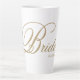 Tasse. Elegante goldene Schrift Bride mit Hochzeitstermin in klassischem Blocktext ganz rechts unten. Das Hochzeitstermin kann entfernt werden, indem das Textfeld gelöscht wird, oder mit Brauname oder Braut- und Bräutigam-Initialen personalisiert werden.