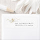 Eine schicke, moderne goldfarbene schwarze Monogramm auf weiß, Rücksendetikett, mit einem dramatischen Skript mit Swashes und Ihrem vollen Namen in einem modernen Serifentyp, post it notes. Einfache Eleganz.