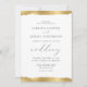 Diese elegante Hochzeitseinladung besticht durch ein vergoldetes Imitat-Randdesign an der oberen und unteren Kante. Das Wort "Hochzeit" erscheint in kalligrafischer Schrift. Passen Sie den kohlegrauen Text mit den Namen der Braut und des Bräutigams und den Einzelheiten der Hochzeit an. Die goldene Kante wird auf der Rückseite wiederholt.