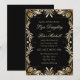 Une élégante invitation de mariage pour mariages de soirée en toute saison de l'année, ce design présente une bordure brossée faux or fantaisie entourant le texte assorti à un arrière - plan noir. Ajoutez les détails de votre mariage à la place de l'exemple de texte.