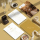 Klassische Save-the-Date-Karte mit elegantem weißem und goldenem Taubendesign. Eine schön gefaltete Karte, um Ihren Hochzeitstermin in einem zeitlosen und stilvollen Design anzukündigen. Flach gedruckt — ohne Prägung oder erhabene Textur. Vollständig anpassbar mit Ihren Veranstaltungsdetails.