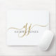 Ein personalisiertes goldenes Schriftmonogramm-Mauspad mit einem fließenden Unterschriftstil-Initial und einem sauberen Namenslayout. Das einfache Monogramm-Design sorgt für ein gepflegtes Aussehen und fügt einen persönlichen Touch auf dem Schreibtisch oder Arbeitsplatz hinzu. Eine gute Wahl für Home-Office, Studios oder alltägliche Computernutzung und ein durchdachtes personalisiertes Geschenk.