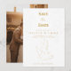 Klassische "Save-the-Date"-Karte mit elegantem weißen und goldenen Taubendesign. Eine schön gefaltete Karte, um Ihren Hochzeitstermin in einem zeitlosen und raffinierten Stil anzukündigen. Flach gedruckt - ohne Prägung oder erhabene Textur. Vollständig anpassbar mit Ihren Veranstaltungsdetails.