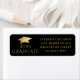 Elegante Graduate Black Gold Cap Rücksendeadressen-Aufkleber. Elegantes Schwarz/Gold (oder andere Hintergrundfarbe) Abschluss Rücksendeadressen-Aufkleber Party mit einem Imitat metallische Goldfolienkappe und elegante Kalligraphie Typografie. Die bearbeitbare schwarze Hintergrundfarbe kann in eine Schulfarbe, Lieblingsfarbe oder eine Farbe geändert werden, die mit Ihrer Abschluss-Ankündigung, Einladung oder Dankeschön-Kartendruckerei koordiniert wird. HILFE: Für Hilfe bei Designänderungen oder Personalisierungen, Farbänderungen, der Übertragung des Designs auf ein anderes Produkt oder der Koordination von Gegenständen, wenden Sie sich bitte an den Designer, bevor Sie über den Zazzle Chat MESSAGE Tab bestellen oder per E-Mail an makeitaboutyoustore@gmail.com.
