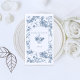 Elegantes und verziertes Vintag-weiß-blauer Toile-de-jouy-Hintergrund-Muster mit exotischen Blume, Weinreben und Blättern, verwoben mit Garland und Körben von Rose mit maßgeschneidertem Etikett, Blumenstrauß und Textfeldern. In Kollektionen finden Sie passende Produkte im Shop von GrafixMom.