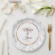 Passen Sie diese eleganten Holzgrau- und Rose-Gold-Papier-Teller mit Ihrer besonderen Touch an. Dieses moderne Design besticht durch die Namen und das Hochzeitsdatum von Braut und Bräutigam, eine künstlerische Palme und eine elegante metallische Rose, vergoldete Kupferfolie, die sich über einen Marmorboden erstreckt. Wenn Sie Hilfe oder passende Artikel benötigen, kontaktieren Sie mich bitte.