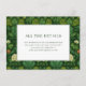 Diese elegante Hochzeitseinschlusskarte verfügt über ein üppiges, botanisches Design mit dunkelgrünem Hintergrund, der mit stilisierten floralen Illustrationen in helleren Grün- und Cremetönen geschmückt ist. Der zentrale, weiß umrandete Bereich bietet viel Platz für Text und verwendet fette Serifenschriften, um wichtige Details hervorzuheben und gleichzeitig ein allgemeines Vintage-Thema beizubehalten. Das asymmetrische Layout verleiht eine Note von Raffinesse und macht es perfekt für formelle Ankündigungen. Die gedämpfte, aber reiche Farbpalette ruft ein Gefühl von Ruhe und Verfeinerung hervor, ideal, um an Ihrem besonderen Tag Anmut und Erwartung zu vermitteln.