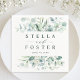 Diese Hochzeitsserviette ist mit bemalten Aquarellnuancen, botanischem Grün und hellblauen Blätter ausgestattet.