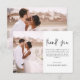Minimalistische Hochzeit Dankeschön Karten, die ein Foto auf der Vorder- und Rückseite haben. Die Dankeschön-Karten enthalten eine moderne, handgeschriebene, kursive Schriftzeichen-Typografie, die elegant, einfach und modern nach Ihrer Hochzeitsfeier zu benutzen sind.