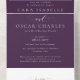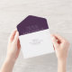 Mit klassischer und eleganter Typografie Set diese feierliche Hochzeitseinladung den Ton für eine zeitlose Hochzeit. Der lila Hintergrund des Stilftigen Pflaums kann durch Klicken auf "Weitere Anpassung" geändert werden. Ideal für eine Herbsthochzeit. Es gibt jede Menge Platz für alle Einzelheiten der Hochzeit und des Empfangs und die abnehmbare RSVP Karte kann als Postkarte verschickt werden.