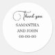 Personalisierte Hochzeit danke Ihnen Aufkleber mit einem eleganten Skript-Schriftart und anpassbaren Namen und Datum. Perfekt zum Versiegeln von Einladungen, Vorlieben oder Geschenkverpackungen. Fügen Sie Ihrer Hochzeitsdekoration eine besondere Touch hinzu!