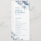 Dieses elegante, blaue, florale Hochzeitsprogramm eignet sich ideal für eine romantische Hochzeit im Freien oder für ein stilvolles, modernes Fest.