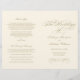 Elegante Hochzeitsfeierprogramme für Elfenbein und Champagner mit Goldmedaille beinhalten ein geblüht Monogramm mit Vintagen Schriftzeichen und Akzenten im Scrolldesign. Personalisieren Sie den benutzerdefinierten Text für Ihr Brautparty, Zeremonie Informationen, und danken Sie Ihnen Nachricht. Hinweis: Diese Textgewichtspapierprogramme kommen flach an und müssen zum Zusammenbauen zusammengelegt werden.