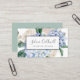 Cet élégant carte de visite bleu hydrangea est parfait pour un propriétaire de petite entreprise, consultant, fleuriste et plus encore! Le design floral classique est composé d'hydrangées bleu poudre douce, agrémentées de fleurs roses neutres et de feuilles verts.