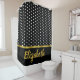 Elegante Imitat Gold Script Schwarz und Weiß Punkt Duschvorhang