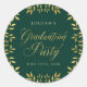 Dieser elegante Rundaufkleber der Graduation Party weist eine Grenze von Blätter und die Worte "Graduation Party" in den Imitaten Gold vor einem grünen Hintergrund auf. Karo weitere Einladungen und Beiträge hier https://www.zazzle.com/collections/class_of_2017_graduation-119637323833384053?rf=238364477188679314 Personalisieren Sie diese mit Ihren Daten, indem Sie den Platzhalter-Text ersetzen. Für weitere Optionen klicken Sie auf die Schaltfläche "Anpassen". *Bitte beachten Sie, dass das Zazzle-Wasserzeichen, das in der Zoomvorschau angezeigt wird, NICHT auf dem gedruckten Endprodukt erscheint. © Rosewood and Citrus