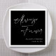 Feiern Sie Ihre Liebe in zeitloser Eleganz mit unserem "Elegant Always and Forever Black and White Wedding Napkins". Das handgeschriebene Design zeichnet sich durch einen fesselnden Herzvektor in einem subtilen weißen Akzent vor einem raffinierten schwarzen Hintergrund aus und schafft so eine einzigartige und unvergessliche Ergänzung zu Ihrem besonderen Tag. Fügen Sie Ihre Namen und das Hochzeitsdatum in einem atemberaubenden, weißen Hintergrund hinzu, um diese Servietten zu personalisieren, sodass sie für viele Jahre ein geschätzter Sake sind. Unsere Servietten sind stilvoll und dauerhaft mit hochwertigen Materialien gefertigt und garantieren eine lange Lebensdauer während Ihres gesamten Festes und darüber hinaus. Ob Sie einen formellen Hochzeitsempfang oder eine intimere Ansammlung beherbergen, unser "Elegant Always and Forever Black and White Wedding Napkins" ist der perfekte Weg, um Ihr Dekor zu verbessern und Ihren Gästen ein unvergessliches Erlebnis zu bieten. Bestellen Sie noch heute Ihre Bestellung und fügen Sie Ihrem besonderen Tag eine Touch Luxus hinzu.