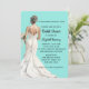Une invitation à la douche nuptiale moderne mais élégante présente un arrière - plan turquoise qui rappelle le glamour sans pareil avec une belle mariée en blanc.