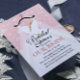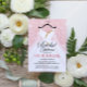 Ce design exquis présente une élégante invitation à la douche nuptiale, centrée autour d'une belle robe blanche mariage accrochée gracieusement à un cintre classique. La robe est ornée d'une subtile parties scintillant dorée qui détaille le buste, ajoutant une touche de glamour et de sophistication. L'ensemble est dressé contre un arrière - plan rose moelleux et pétillant aux effets de boukeh délicats, créant une atmosphère onirique et festive. Cette oeuvre capture parfaitement l'excitation et la joie qui ont conduit à un mariage, célébrant "NOTRE MARIÉE" avec style et grâce. Le design est un mélange d'élégance moderne et de charme intemporel, idéal pour donner le ton d'une douche nuptiale mémorable et chic. Il incarne l'essence de l'anticipation, de l'amour et de la magie du voyage spécial de la mariée.