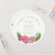Une invitation unique à la douche nuptiale faite en stock de carte ronde et un arrière - plan blanc. Des graphismes de petits pois verts courent autour du bord extérieur et de jolies aquarelles de fleurs de cailloux roses et coralliennes ornent le fond. Personnalisez le texte vert de couleur pour votre événement nuptial. Des serviettes en papier, des assiettes et des tasses sont disponibles.