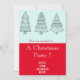 Une invitation à la fête élégante et élégante pour une fête de Noël avec une illustration Arbre de Noël en silhouette noire contre un arrière - plan turquoise. Le texte et la couleur rouge arrière - plan sur cette invitation sont entièrement personnalisables pour inclure vos propres détails personnels.