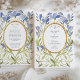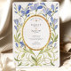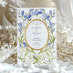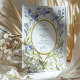 Erzählen Sie Ihre Gewerkschaft mit der raffinierten Kunst dieser Art Nouveau inspiriert Hochzeitseinladung. Dieses exquisite Design besticht durch eine handbemalte Aquarellgrenze aus stilisierten magnolienartigen Blume in ruhigen Farbtönen von staubblauen und periwinkligen Farben. Raffinierte, wirbelnde Weinstöcke mit gedämpften Salbei-grünen Blätter schaffen einen schönen, symmetrischen Rahmen um Ihre Details. Im Mittelpunkt des Designs steht ein einzigartiger, handgemalter ovaler Rahmen aus Bronze-Gold mit einem charmanten gesteppten Detail, der eine Touch warmen, Vintagen Luxus schafft. Ideal für eine Vintage oder künstlerische Hochzeit mit einem "etwas blauen" Thema.