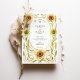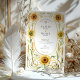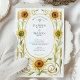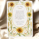 Feiern Sie Ihre Liebe mit der Wärme und Eleganz dieser atemberaubenden Jugendstil-inspirierten Hochzeitseinladung. Dieses schöne Design zeichnet sich durch eine symmetrische, handbemalte Aquarellgrenze aus fröhlichen goldenen Sonnenblumen und rustikalen Weizenhalmen aus. Raffinierte, wirbelnde Weinreben in weichem Gold und Grün gestalten Ihre Hochzeitsdetails und verbinden rustikalen Charme mit ausgeklügeltem Kunsthandwerk. Im Mittelpunkt der Einladung steht ein klassischer ovaler Rahmen, der in einer warmen, bemalten goldfarbenen Bar gehalten ist und Ihren Text elegant umschließt. Ideal für eine Hochzeit im Spätsommer oder im Herbst, für eine Feier auf dem Lande oder für ein Paar, das ein natürliches und elegantes Design sucht.