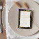 Mit unserer Black Art Deco Frame Wedding Enclosure Card, einer perfekt dimensionierten 3,5" x 5" Ergänzung zu unserer umfangreichen Einladungssuite Kollektion, können Sie Ihre Feierlichkeiten ganz individuell gestalten. Mit einem klassischen schwarzen Gold Art Déco Element fügt sich diese Gehäusekarte nahtlos in das anspruchsvolle Thema Ihres Hochzeitsbriefings ein. Diese vollständig anpassbare und als benutzerfreundliche Vorlage für bequeme Online-Personalisierung präsentierte Kompaktkarte ermöglicht es Ihnen, zusätzliche Informationen mit einer Touch von Eleganz zu vermitteln. Egal, ob Sie Unterkunftsdetails, Wegbeschreibungen oder andere relevante Informationen austauschen möchten, die Größe von 3,5" x 5" bietet genau den richtigen Platz. Als Teil unserer zusammenfassenden Black Art Deco Frame Wedding Invitation Suite sorgt diese Gehäusekarte für ein harmonisches Thema in Ihrer gesamten Hochzeitsstätte. Vereinen Sie Vintag-inspiriertes Design mit moderner Anpassung, um ein poliertes und koordiniertes Aussehen zu schaffen, das die Ästhetik Ihres Festes unterstreicht. Set die Bühne für eine wunderbar detaillierte Hochzeit mit unserer Black Art Deco Rahmen Hochzeitskarte, wo jedes kleine Element zur Erhabenheit Ihres besonderen Tages beiträgt. Bitte beachten Sie, dass die Goldfarbe zwar atemberaubend ist, aber flach gedruckt ist und keine metallische Folie ist.