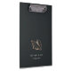 Die schicke, personalisierte Zwischenablage auf der Insel bietet zwei Textzeilen in klassisch weißer Schrift, auf einem weichen schwarzen Hintergrund, der mit einer Muschel-Abbildung in tropischen Grachten in Imitaten aus Kupferfolie geschmückt ist. Design wiederholt sich auf der Rückseite. Fügen Sie Ihren Namen oder Firmennamen zu dieser eleganten Zwischenablage mit modernem Strandleben hinzu.