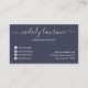 Moderne und elegante Visitenkarten für Friseursalons mit Imitaten aus Kupfer-Rose-Goldschere, tiefblauem Hintergrund und elegantem Kalligraphie-Schriftart.