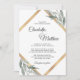 Elegante Hochzeitseinladungen mit tiefgrünen, schlauen Blätter, Blättern, Olivenzweigen, Blattwerk - botanisches Thema. Imitate Goldfolienrahmen in Diamantform. Ideal für jedes Jahr oder Hochzeitsthema. Delikates Design in Aquarellfarben lackierte Blätter. Die Rückseite der Karte hat eine Monografie aus Braut und Bräutigam.