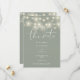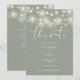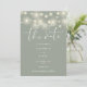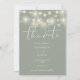 Diese elegante Salbeigrün-Einladung zur Hochzeit mit hübschen Lichterketten kann mit Ihren Informationen in schicker Typografie und Ihrem Hochzeitswebsite-QR-Code und Details auf der Rückseite personalisiert werden. Entworfen von Thisisnotme