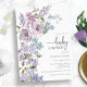 Elegante Lila Kinderdusche Einladung. Erleben Sie den Charme der rustikalen Eleganz mit unseren atemberaubenden Baby Dusche Einladungen. Handgemalt in lila und blauen Farbtönen, die das einzigartige Ambiente Ihrer rustikalen, Outdoor- oder klassischen Babydusche widerspiegeln.