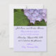 Schöne Hydrangeas in einem sanften Schatten von lila Akzent durch knuspriges grünes Blattwerk. Ein heller Hintergrund betont Hochzeitsinformationen. Passen Sie Ihre Wünsche an.