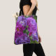 Ihre Auswahl an stilvollen Totentaschen oder Crossbody-Taschen mit einem Überdruck, der ein Foto von eleganten, lila Blüten der Rose bietet. Ein schönes, blumengeschmücktes Design! Wählen Sie Ihre Tasche Stil und Größe.