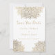 Elegante handgezeichnet, weiß und verglaste goldene Blumenmandala Save the Date Hochzeitseinladungen sind perfekt für jede klassische und raffinierte Zeremonie. Dieses exquisite, einfache, schicke, blendende Design ist ideal für das trendige und stilvolle Paar. Passen Sie dieses Design mit Ihren eigenen Nachrichten und personalisierten Informationen an. Alle Designs sind bedruckt