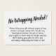 Wenn Sie eine Dusche ohne Geschenkverpackung für eine zukünftige Braut beherbergen, könnte diese lustige, einfache Karte die Wahl für Sie sein. Mit einem eleganten Skript-Schriftart fügte ich zuerst einen Header hinzu, der auf der Vorderseite "No Wrapping Needed!" und auf der Seite "To" und "From" für die Geschenkmarke steht. Das Vorlagenfeld war Set, um den Gästen Anweisungen zu geben, die ihr Geschenk nicht einpacken; bitte ändern Sie den Wortlaut nach Belieben. Es gibt viele beliebte Alternativen zu diesem Text, wenn Sie möchten, eine Änderung. Alle Schriftart und Farben können nach Belieben modifiziert werden. // Designed by Melody Watson for Paper Muserie.