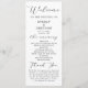 Elegantes und einfaches Hochzeitsprogramm mit modernem Skript. Das Programm listet das Zeremoniell-Programm, danke Nachricht, und die Mitglieder der Hochzeitsfeier.