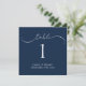 Elegante Moderne Blue Wedding Tischnummer für eine angenehme, moderne Tischumgebung für eine klassische Hochzeit. Personalisieren Sie es vorne und hinten.