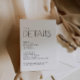 Erhöhen Sie Ihre Hochzeitsplanung mit unserer atemberaubenden Elegant Modern Wedding Details Card! Das Design ist sauber und minimalistisch. Passende Artikel in unserem Shop Cava Party Design.