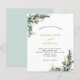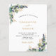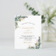 Weiß, mit Eukalyptusgrün und goldenen Blätter dekoriert. Personalisieren und fügen Sie Ihre Namen und Hochzeitsdetails. Schwarze und goldfarbene Buchstaben.
