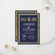 Elegante, stilvolle und moderne Imitate bedruckten die Kontur der Goldsequine und den marineblau-blauen Hintergrund mit den Imitaten bedruckte Goldfolien-Typografie, Rett-the-Date-Hochzeitskarte. Dieses klassische und raffinierte Design ist perfekt für das trendige und stilvolle Ehepaar. Personalisieren Sie Ihre eigene Nachricht auf der Vorderseite sowie ein individuelles Monogramm auf der Rückseite. Das gesamte Foto-Druckdesign.