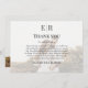 Mit unserer eleganten Monogram Custom Foto Wedding Dankeschön Card können Sie sich für Ihre Dankbarkeit bedanken. Die Vorderseite zeigt einen gedämpften Foto Hintergrund, elegant betont die Monogramme und Ihr herzliches Dankeschön an Sie. Der dreh der Karte zeigt eine Leinwand für ein wertvolles Foto, das die gemeinsamen Momente Ihres besonderen Tages symbolisiert. Diese Karte ist nicht nur ein Dankeschön, sie ist ein Beleg für die Eleganz und Schönheit, die Ihre Feier umfasste.