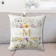 Mit diesem eleganten Kissen stärken Sie Ihren Platz! Mit einem farbenfrohen Wildblume-Garten in Gelb, lila und Salbei-Grün mit einer maßgeschneiderten Monogramm.