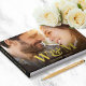 Elegantes und schicke Hochzeitsgast-Buch mit Ihren Fotos auf der Vorder- und Rückseite, überlagert mit Ihren Monogramm-Initialen in großen klassischen Serifentypografie, Ihren Vornamen und Ihrem Hochzeitstermin in Ihrer Wahl von echtem Gold, Silber oder Rose Goldfolie. Personalisieren Sie Ihren Titel auf der schwarzen Wirbelsäule.