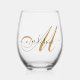 Elegante Monogram Gold Script Name Weinglas Ohne Stiel