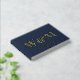 Elegantes, dunkelmarineblaudes Gästebuch mit der Wahl von Goldfolie, Silber oder Rose, Ihren Monogramm-Initialen in großer klassischer Serifentypografie, Ihren Vornamen und Ihrem Hochzeitstermin. Fügen Sie einen Titel auf den Rücken.